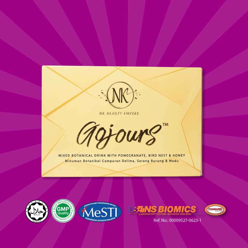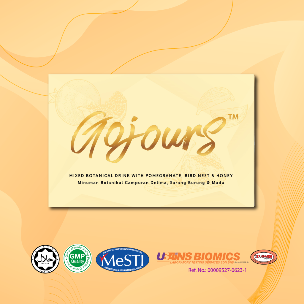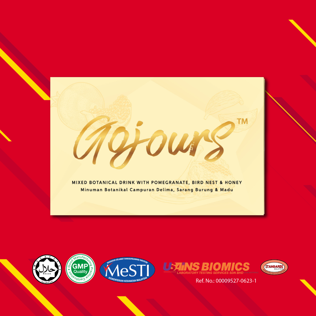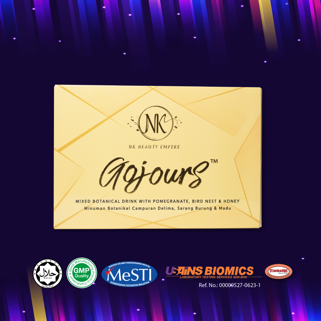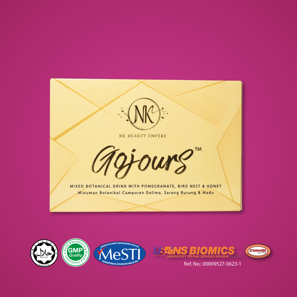 Gojours Mixed Botanical Drink is an advanced and premium natural ingredients Mixed Botanical Drink with Pomegranate, Honey & Bird Nest specially formulated for brighter, healthier, glowing, and radiant looking skin. Convenient ready-to-drink sachets that are easy to carry anywhere and consume anytime with 15 sachets in each box. Gojours Mixed Botanical Drink is 100% safe and Halal without harmful chemicals and suitable for diabetics.