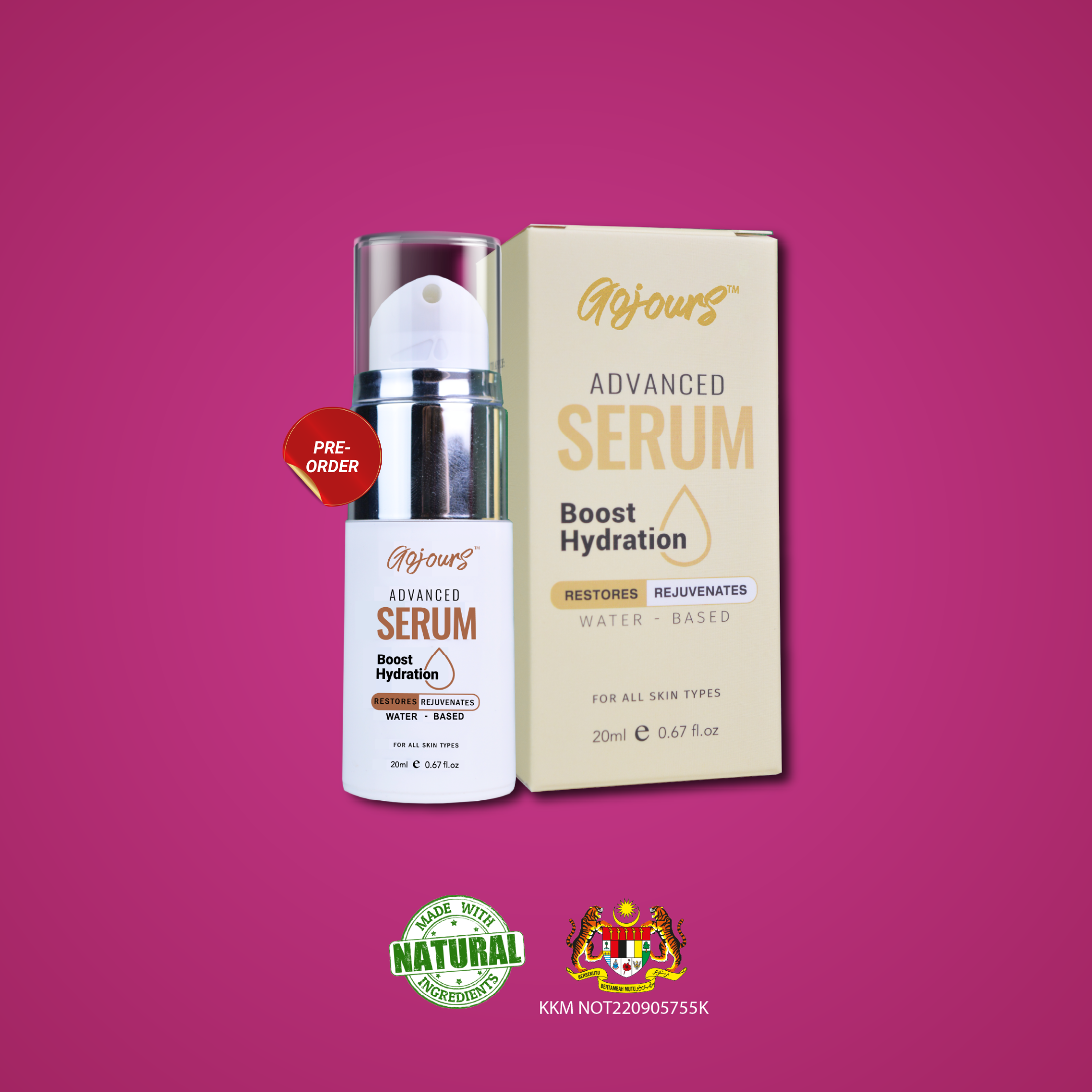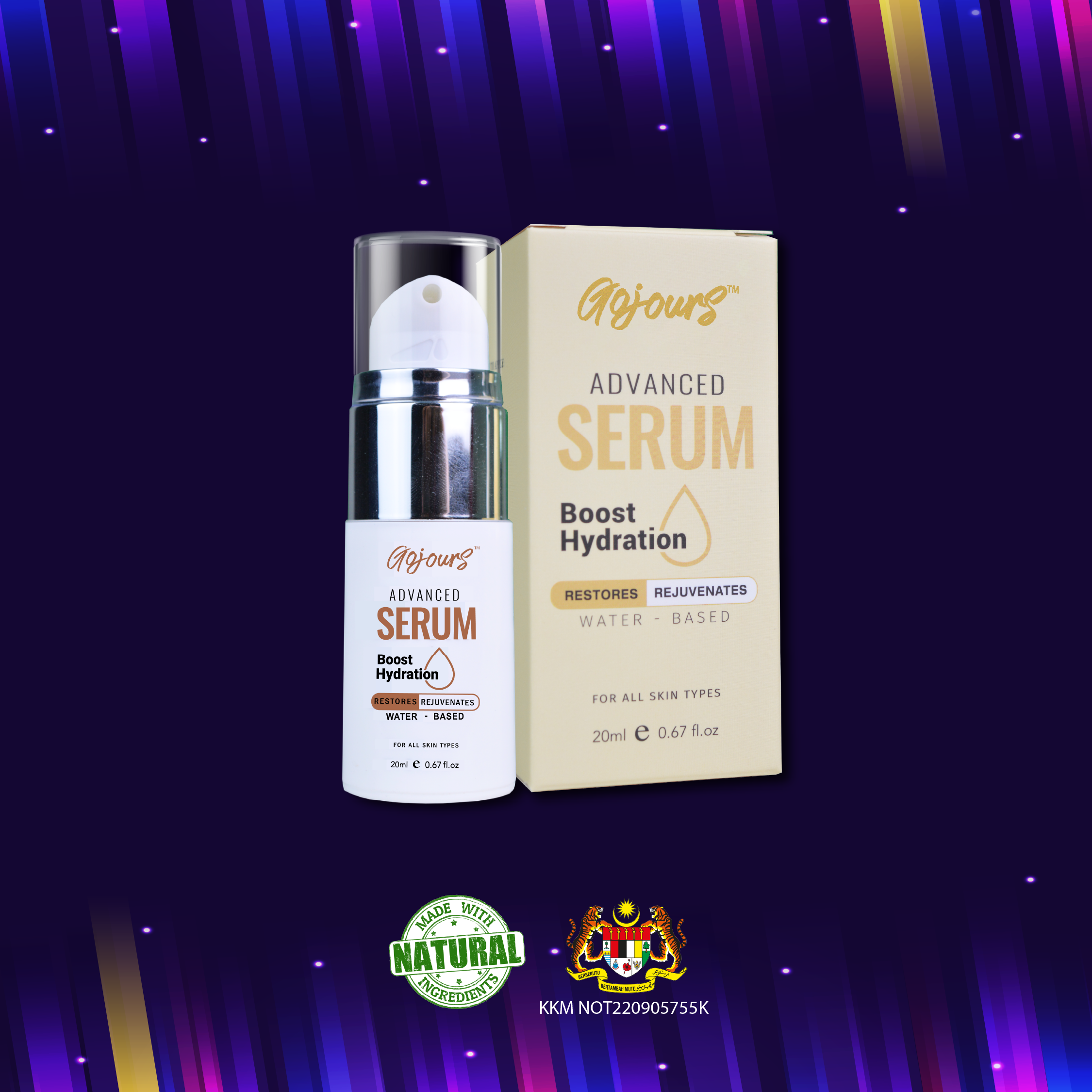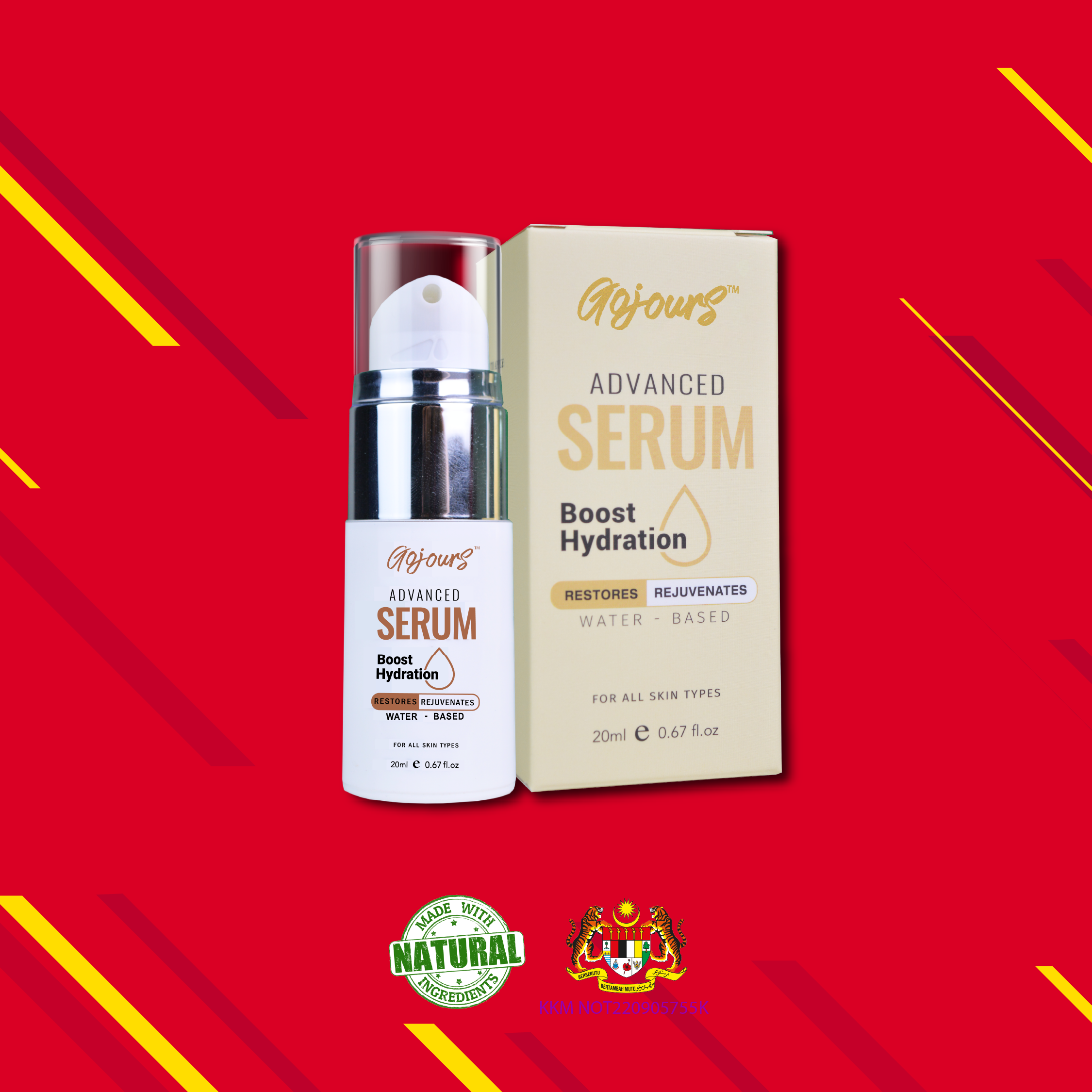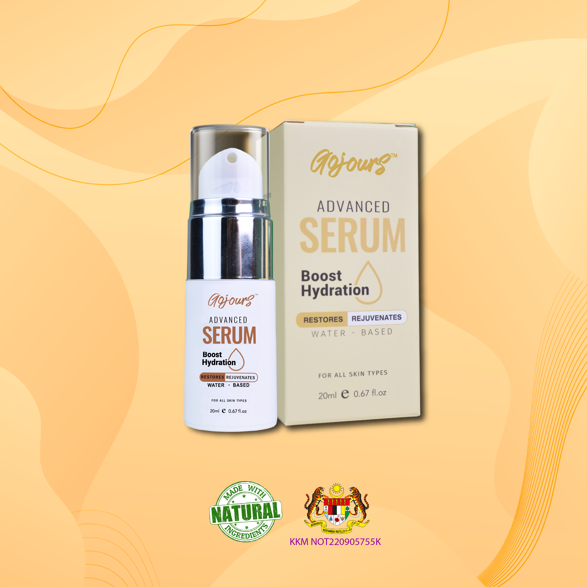 Gojours Advanced Serum is a water-based serum that focuses on treating the skin and is suitable for all skin type for its texture is lightweight and non-sticky. It is made up of smaller molecules that can penetrate deeply into the skin and deliver a very high concentration of active ingredients which helps in reducing acne, fading out the scars, even out the skin tone and improves skin recovery.